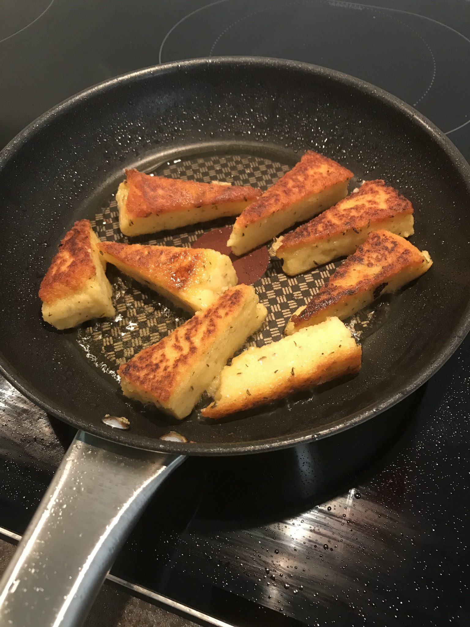 Een lekker hapje dat ik heb gezien op 24Kitchen. Overigens moet je wel houden van polenta: beperkte smaak van zichzelf maar lekker op smaak gebracht goed voor bij de borrel (of zo).