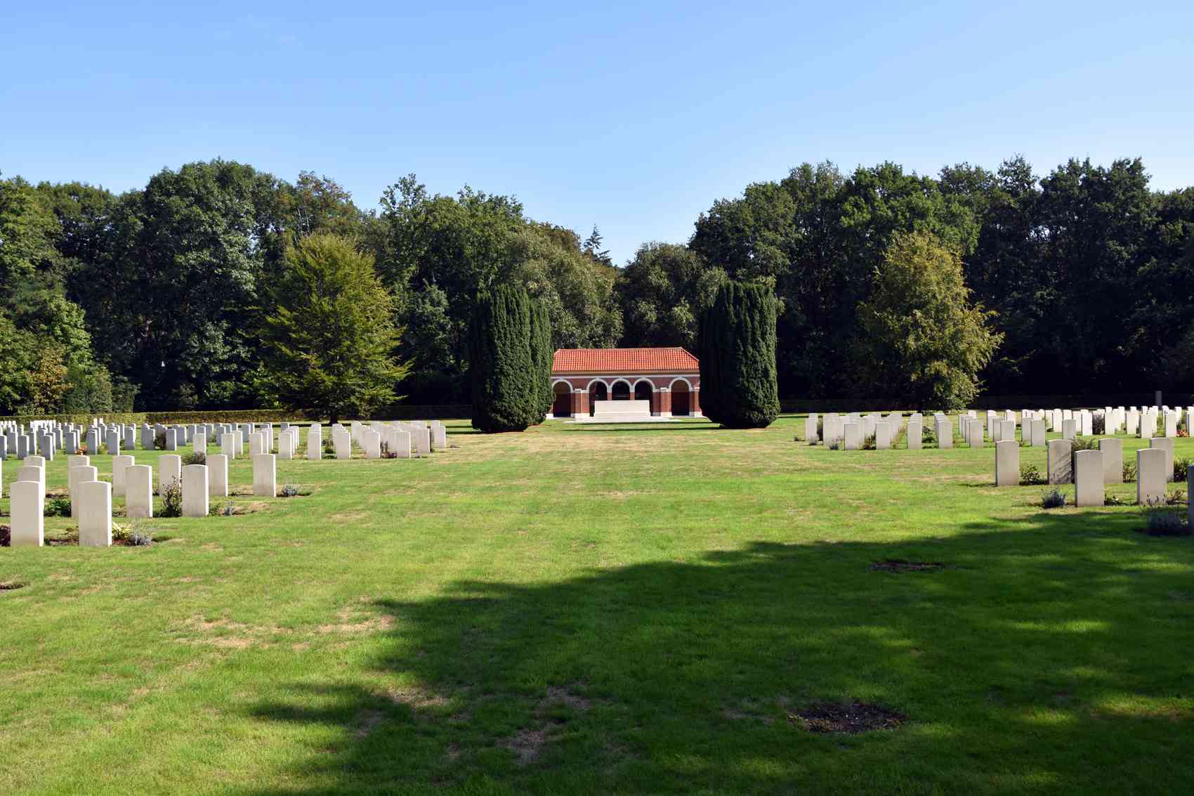 Jonkerbos, Nijmegen. De begraafplaats herbergt 1629 graven van militairen van het Britse Gemenebest en dertien van andere nationaliteiten die tussen 3 september 1939 en 5 mei 1945 op Nederlands grondgebied zijn gesneuveld. Bij elk graf is een identieke zerk van witte natuursteen geplaatst met in reliëf een embleem en een kruis. Voor de graven staat het ‘Cross of Sacrifice’, vervaardigd uit Portland-natuursteen. Op de plaats de begraafplaats is aangelegd, bereidde het 504de Para Infanterie Regiment van het Amerikaanse leger zich voor op de Waal-oversteek van 20 september 1944.