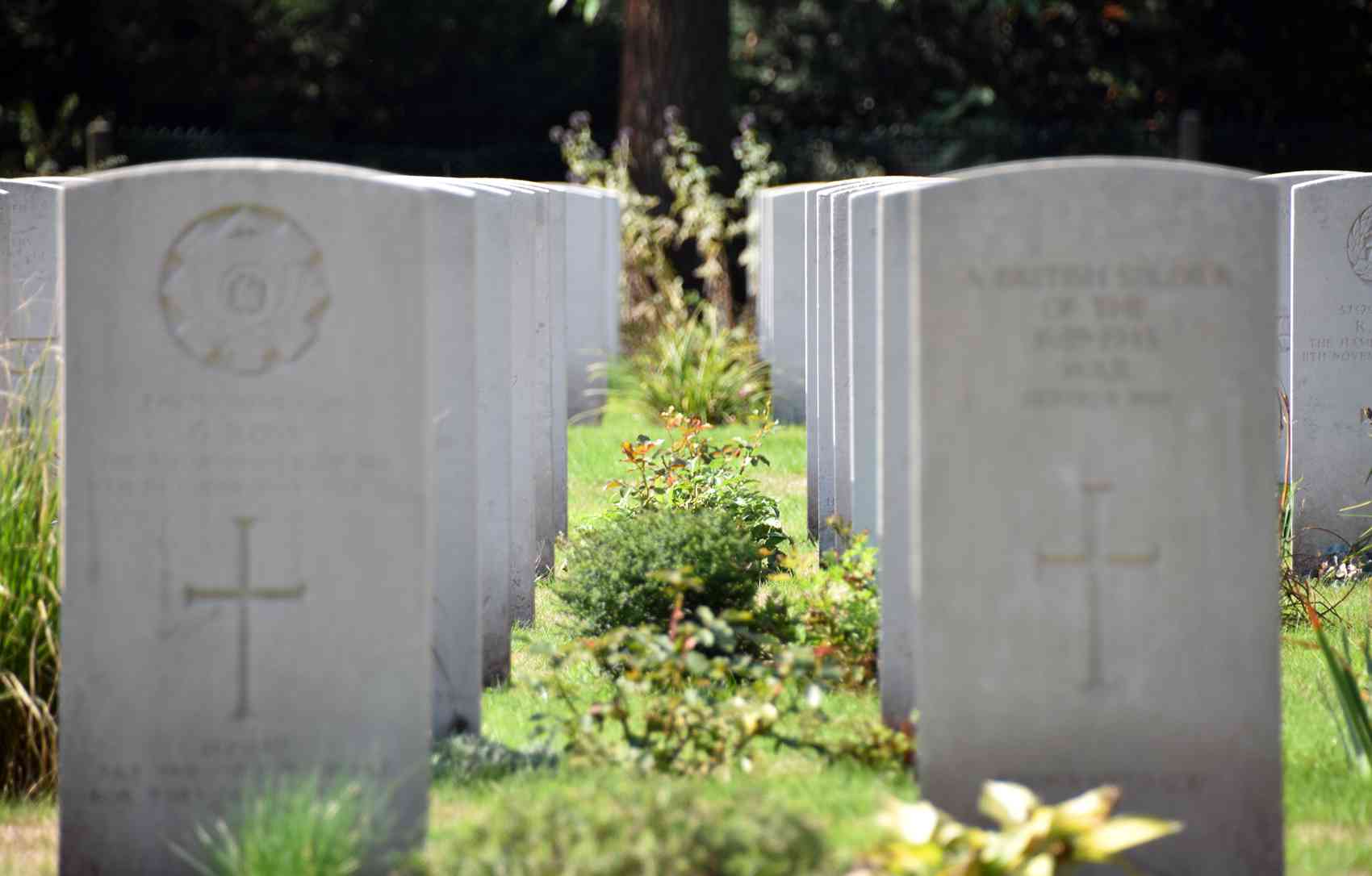 Jonkerbos, Nijmegen. De begraafplaats herbergt 1629 graven van militairen van het Britse Gemenebest en dertien van andere nationaliteiten die tussen 3 september 1939 en 5 mei 1945 op Nederlands grondgebied zijn gesneuveld. Bij elk graf is een identieke zerk van witte natuursteen geplaatst met in reliëf een embleem en een kruis. Voor de graven staat het ‘Cross of Sacrifice’, vervaardigd uit Portland-natuursteen. Op de plaats de begraafplaats is aangelegd, bereidde het 504de Para Infanterie Regiment van het Amerikaanse leger zich voor op de Waal-oversteek van 20 september 1944.