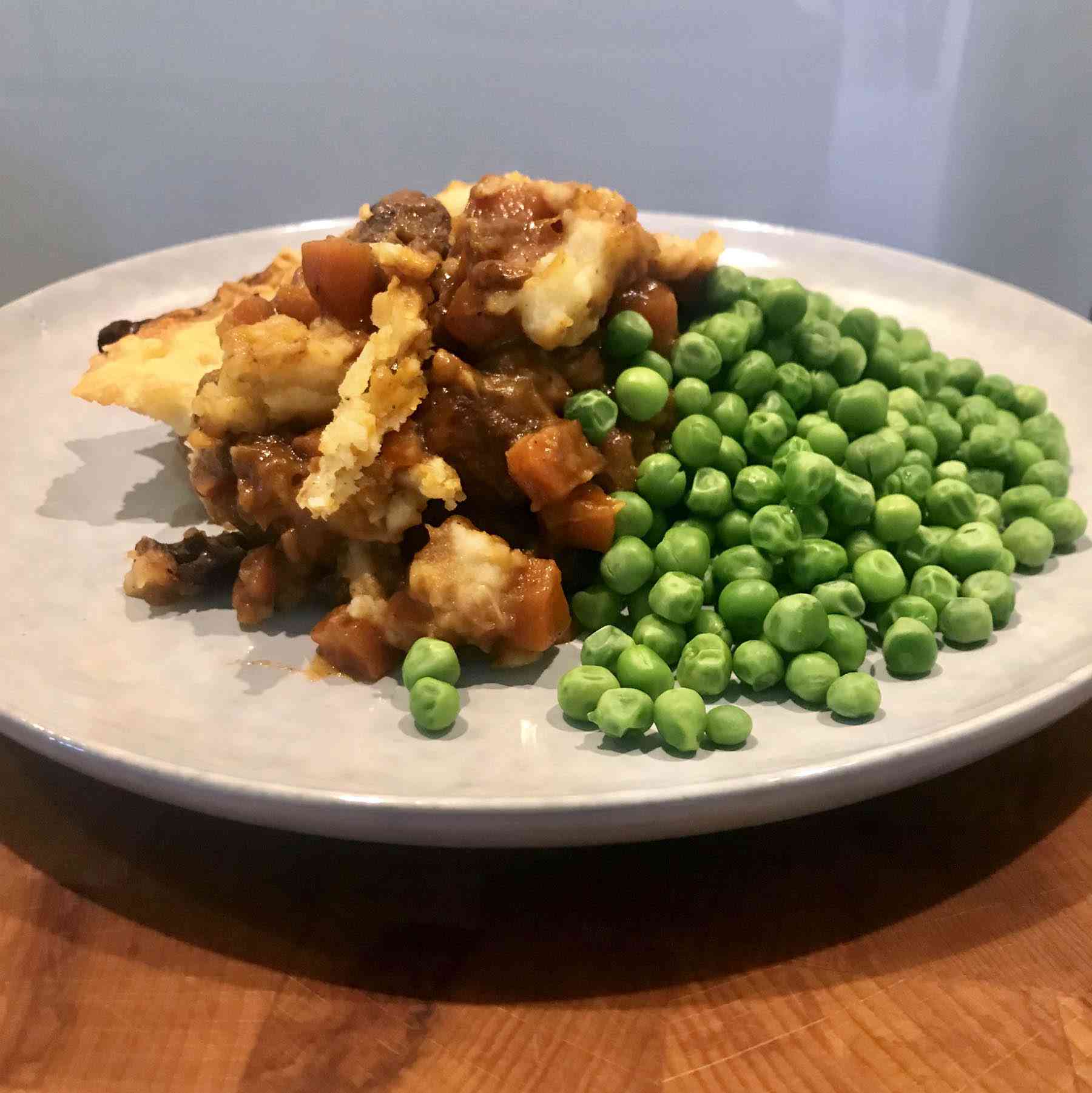 Nodig. 500-600 gram runderriblappen, 6 winterpeen, 3 dikke uien, verse tijm, 2el tomatenpuree, 250ml rode wijn, 350ml runderbouillon, 4 laurierbladen, een el worcestersaus, een scheutje witte wijnazijn, een halve kilo aardappelen en lekkere kaas om te gratineren.