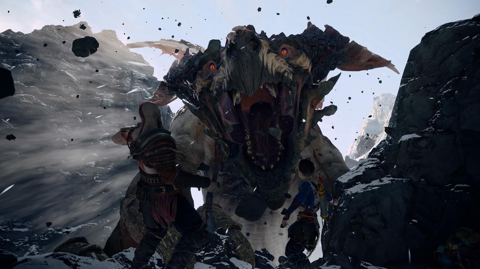 Het is een spel wat veel raakvlakken met Thor heeft. Kratos is een sterke man met bijzondere kwaliteit. Je draagt de hele tijd een zwaar bijl bij je dat je op vijanden kunt gooien en dan met een druk op de knop naar je laat terugvliegen. Net zoals die zware hamer van Thor. Echt cool. De gameplay is makkelijk en de toetsencombinaties had ik snel onder de knie. Atreus wordt gedurende het spel sterker en sterker en helpt je op een gegeven moment ook echt in de strijd. Hij schiet pijlen af en later in het spel kun je een coole wolf oproepen die de vijanden aanvalt.Of andere dieren, maar ik blijf bij de wolven. Tegen het einde springt hij op vijanden, zodat jij die kunt afschieten. Het uit elkaar rijten van de rompen en hoofden van de fabelachtige wezens is echt cool en de actie smaakt naar meer. In reviews heb ik gelezen dat de ‘grote bazen’ op een gegeven moment saai worden, maar dat vind ik helemaal niet. Ik vind het cool blijven dat je als klein poppetje tegen een stenen reus van 15 meter strijdt. Of een geweldig grote draak in de verboden berg in de laatste missie. Echt geweldig.