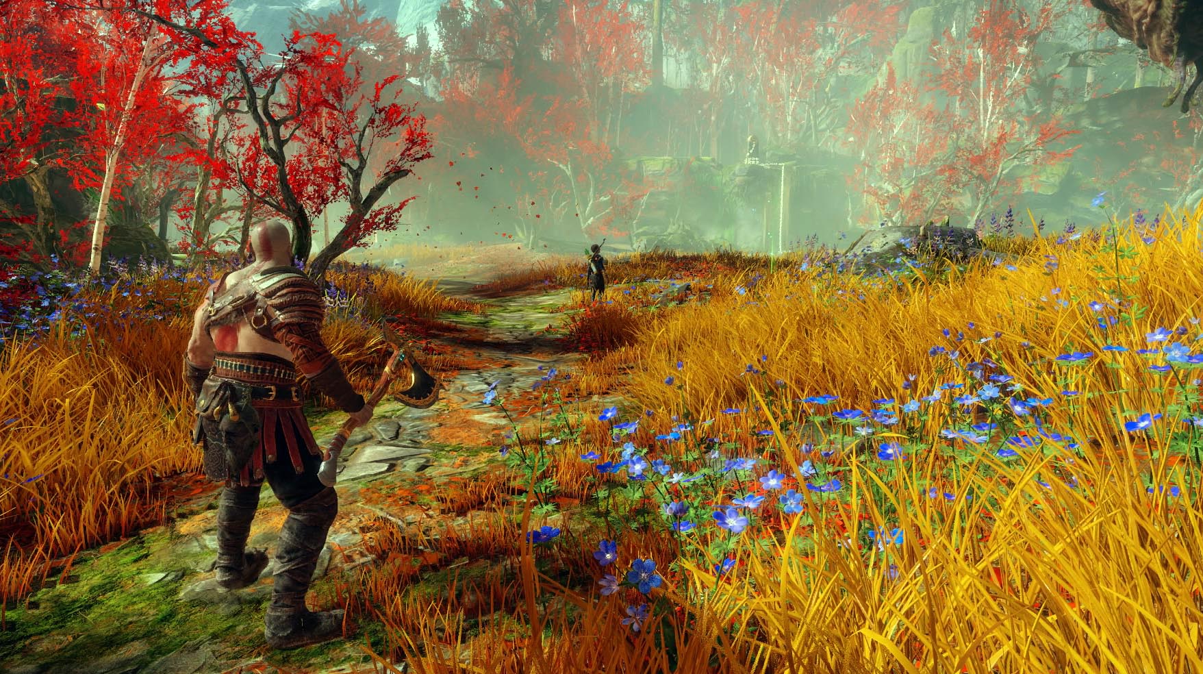 Het spel is geen vrije wereld, maar dat vind ik niet erg. Ik speel redelijk veel open wereld spellen en dan is het ook wel eens lekker een pad af te leggen zonder dat je 2 miljoen zijmissies kunt doen. Er zit een vriendelijke heks in die later Freya blijkt te zijn. Zo woont in een boom in een geweldig mooi, oranje bos. Herfstachtig. Op een gegeven moment wordt het zoontje ziek en dan denk je: ik heb geen zin om weer op pad te gaan. Je moet het hart van een of andere brugbewaker gaan halen en eigenlijk is dat super cool. Het is een grote gast en vooral het verslaan van reuzen voelt echt heel lekker haha. Ook komen altijd twee dwergen op je pad die de beste smeden van de wereld zijn. Ze helpen je je bijl te upgraden of draaien een sleutel in elkaar die je nodig hebt. Grappig hoor. Twee broers die elkaar niet meer zien, maar uiteindelijk wel samen komen! Op een plek vind ik in het midden van het spel een Valkyrie. Oh, wat is ze sterk zeg. Niet te verslaan. Dus kom nadat ik sterker ben geworden terug, en dan versla ik haar binnen vijf keer. ‘Bedankt voor het bevrijden’, zegt ze tegen me. ‘Graag gedaan’, denk ik. Dat had dus al veel eerder gekund. Maarja!