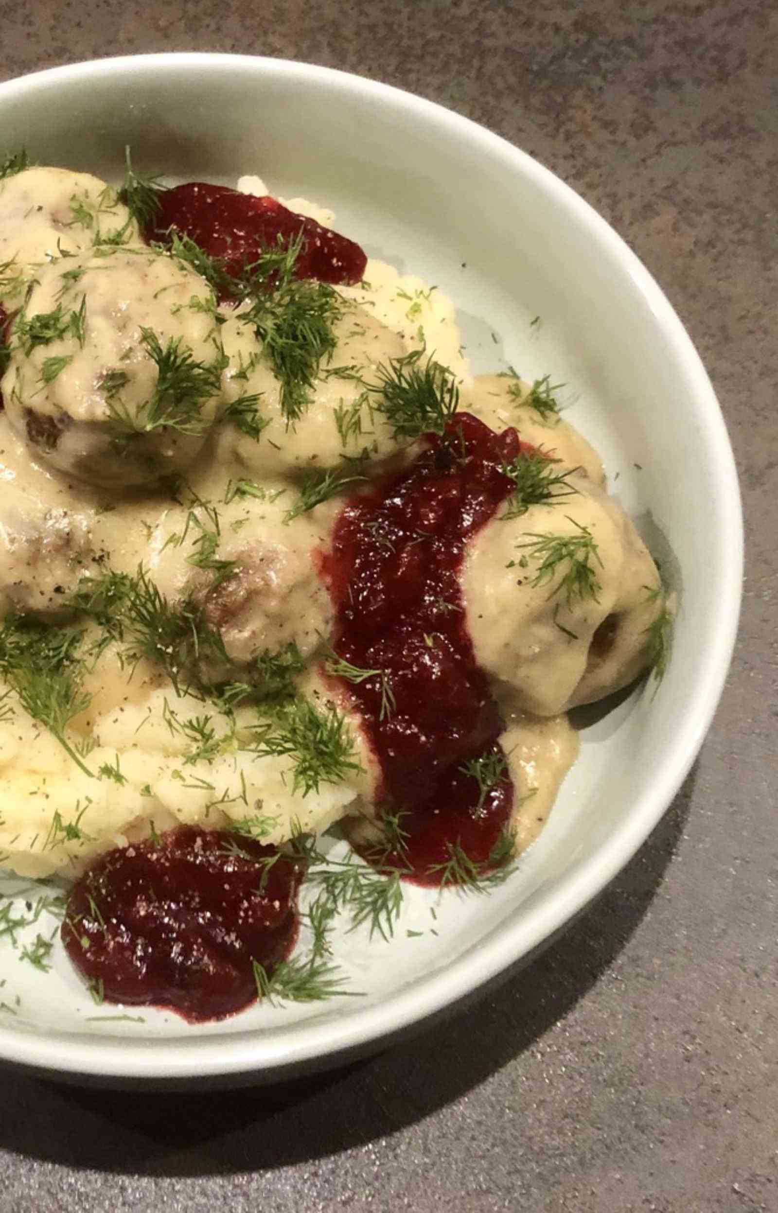 Zo dit was een super lekker gerecht! Ik heb wel twee keer opgeschept. Niks goede voornemens, daar doe ik niet aan. Het feit dat de aarde nu weer een rondje heeft gedraaid, maakt toch niet dat ik ineens heel andere dingen moet gaan doen? Precies. Nu kun je bij de blauw-gele winkel van die cheap-ass Zweedse ballen gaan eten. Ik denk voor 10 cent per stuk ofzo. Nooit gedaan. Maar Wouter tipte me pas eens om dat te maken, dus… dat heb ik gedaan. En dit is zeker een blijvertje. Trouwens is deze variant niet helemaal traditioneel. Ik heb kippengehakt gebruikt en de roomsaus is op basis van groentebouillon. En heel veel dille erover!