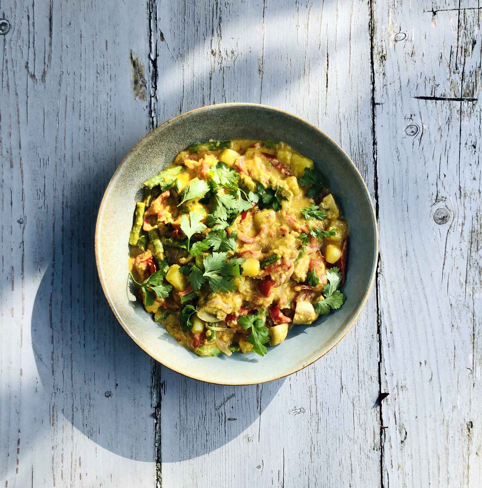 Curry met veel groenten en rode linzen