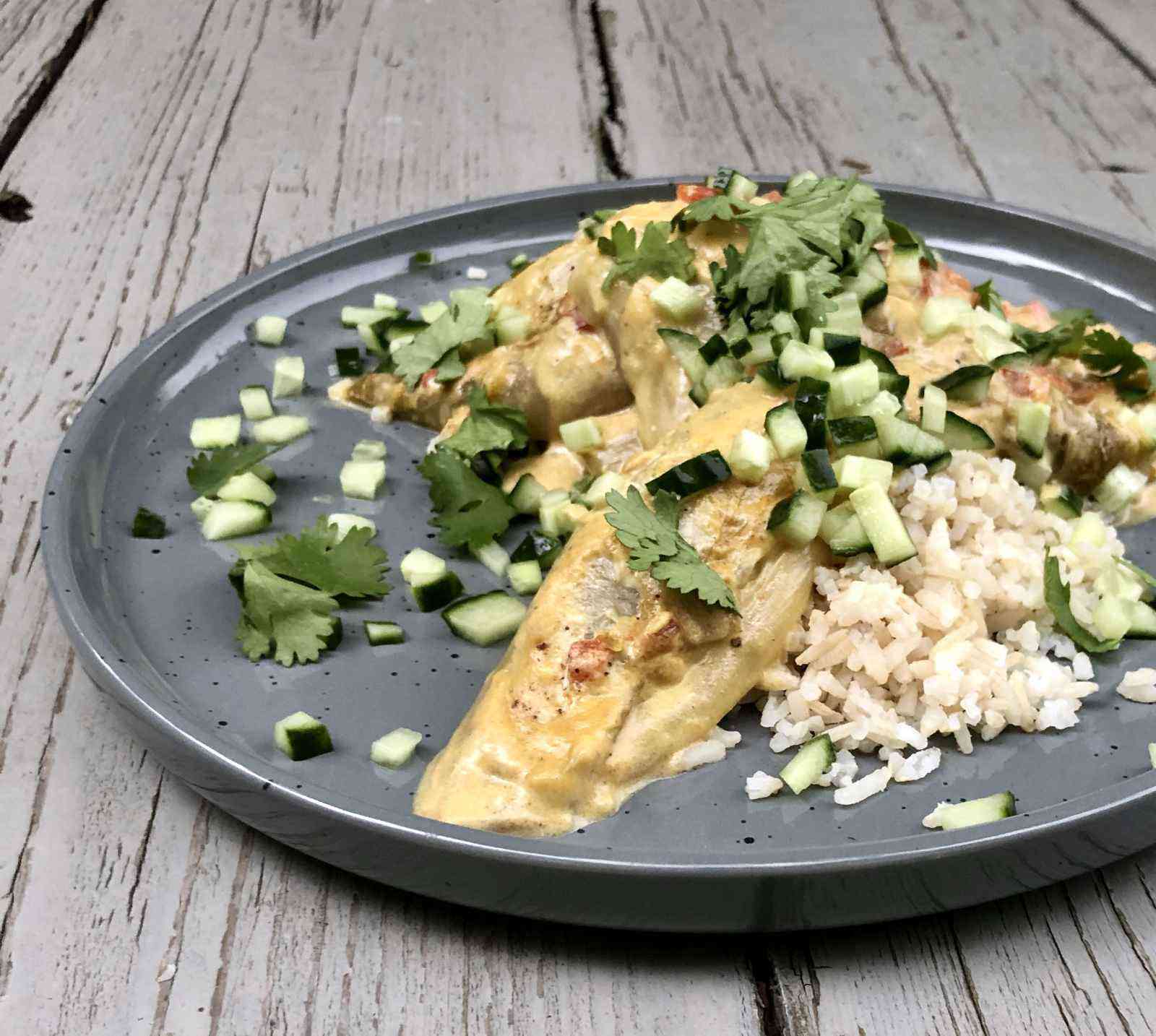 - Zo, je curry is al klaar! Je kunt er een simpele rijst bij eten, wat fijngehakte komkommer en verse koriander. Dat heb ik in elk geval gedaan. Ook wat cashewnoten erbij zal zeker smaken!