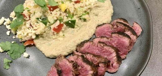 Je hebt nodig: een aubergine, flinke eetlepel tomatenpuree, drie verse tomaten, een paprika, blikje kikkererwten (150 gram), grote ui, drie teentjes knoflook, olijfolie, theelepel komijn, twee theelepels harissa, sap van een kwart citroen, peper en zout. En verse peterselie en koriander niet te vergeten.