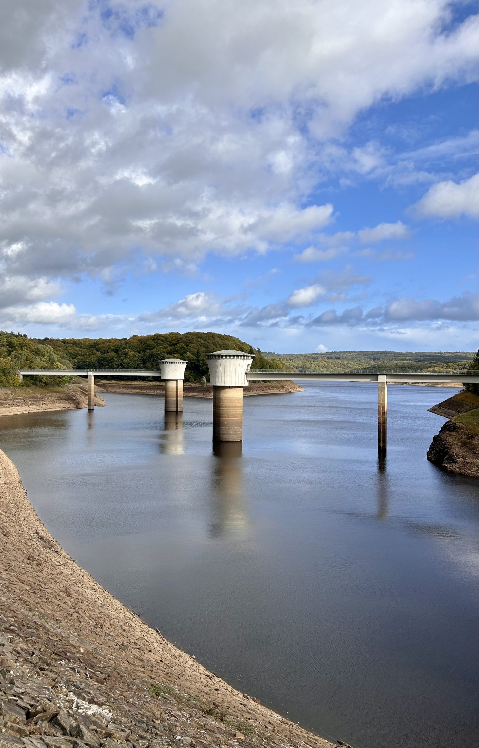 Het is zaterdag en we brengen een bezoek aan het overdekte winkelcentrum in Luik. De laatste maanden komen we geregeld in België. Het is dichtbij en de steden hebben een andere charme dan in Nederland. Na alle winkels rijden we door naar een plek die Lea heeft gevonden. Het meer van Gileppe, waar een of andere toren staat met brasserie erin. Dat klinkt goed en we rijden aan zonder verwachting. Eenmaal aangekomen zijn we direct enthousiast. Wat is dit voor een plek? Er pronkt een betonnen toren boven de bomen uit en je ziet aan de buitenkant glazen liften op en neer gaan. Het lijkt ‘Sjakie en de grote glazen lift’ wel. Dat boek is me altijd bij gebleven. En dit alles naast een doorkijk op een groot meer met twee grote torens erin. Wat is dit voor een plek?