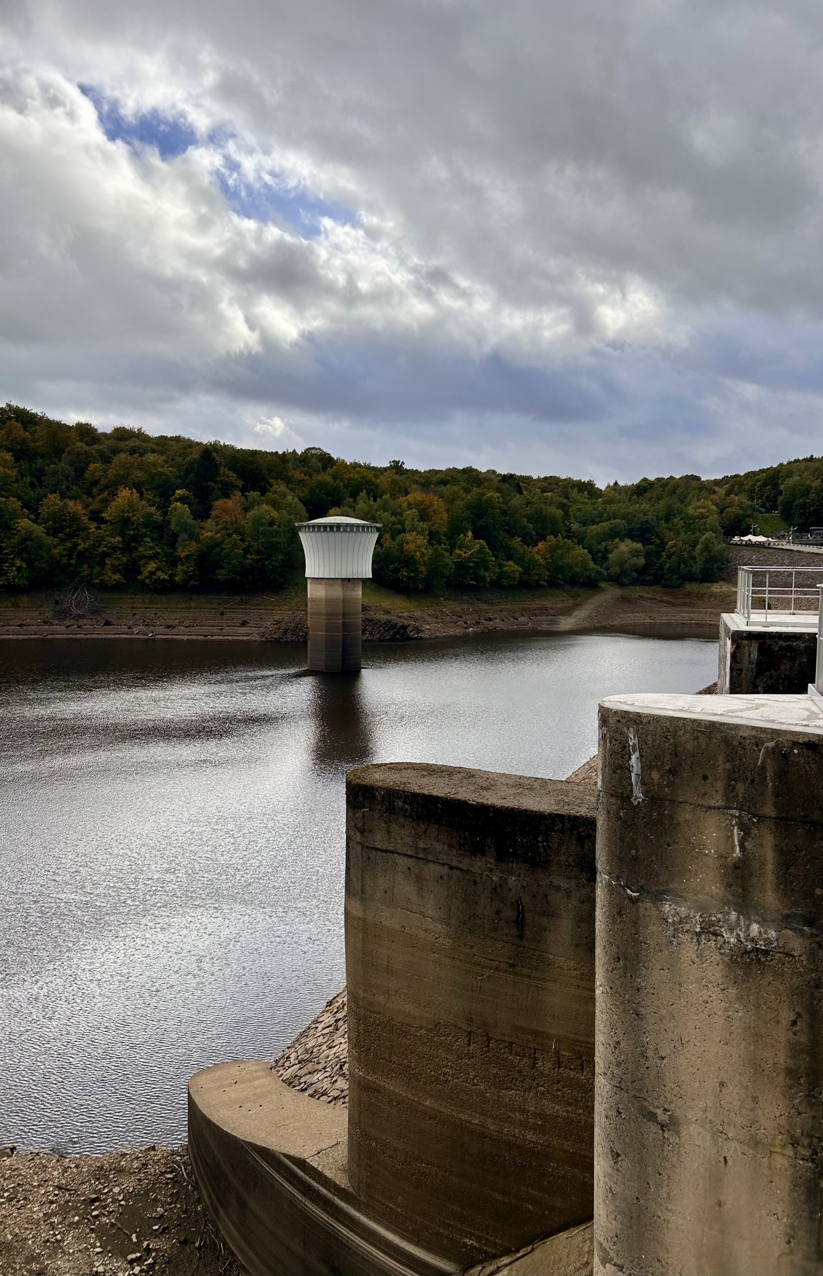 Het is een plek die je niet vaak tegen komt. Ik heb al vanalles op de wereld gezien, maar dit is gewoon een mooie en interessante locatie. Zo zijn er twee turbines in de vorm van een soort van torens in het stuwmeer die wat ik heb gelezen 70 meter hoog zijn. Ze wekken elektriciteit op uit het water dat door de dam stroomt. Deze waterkrachtcentrales zijn een moderne toevoeging aan de historische dam die inmiddels ook dient voor de productie van drinkwater. Het waterverval bij de dam is 42,9 meter, wat een jaarlijkse productie van 3 miljoen kWh aan elektriciteit mogelijk maakt.