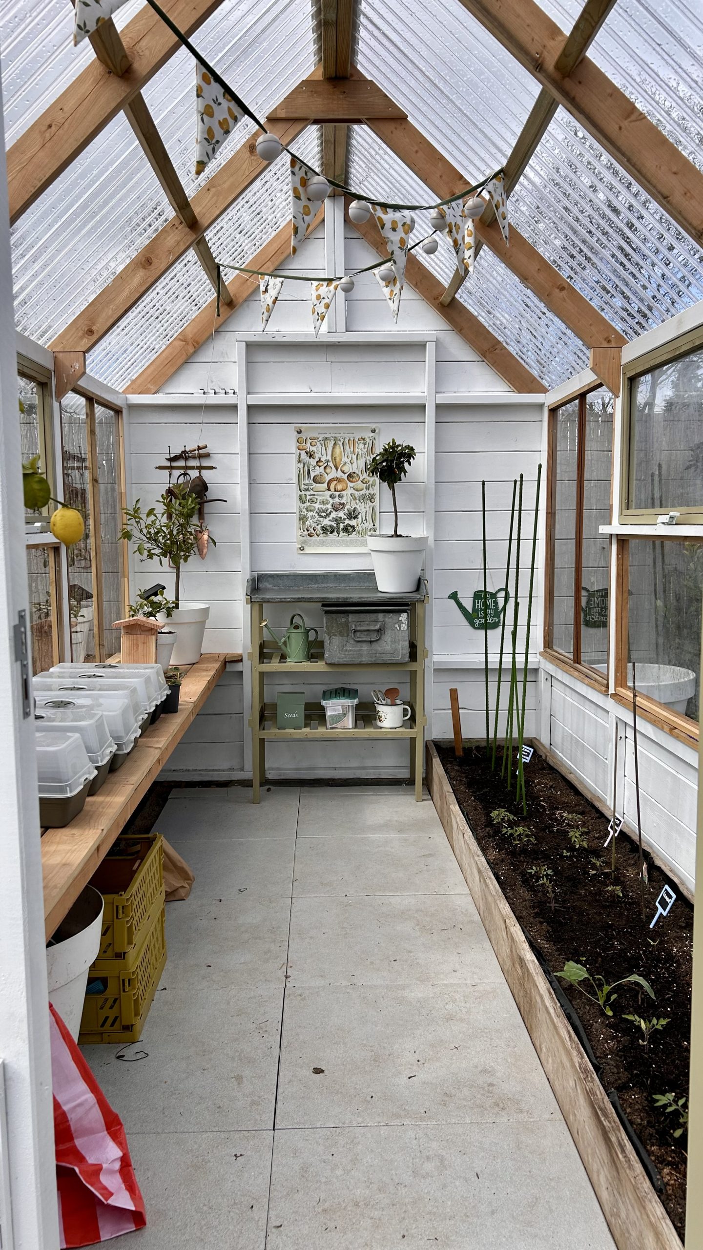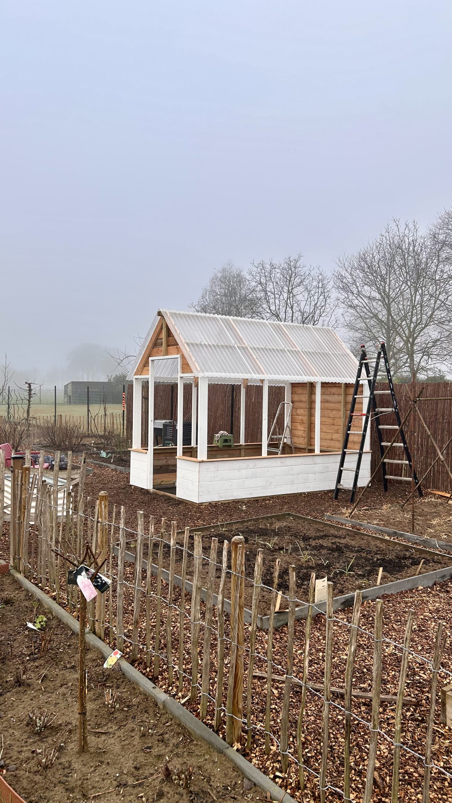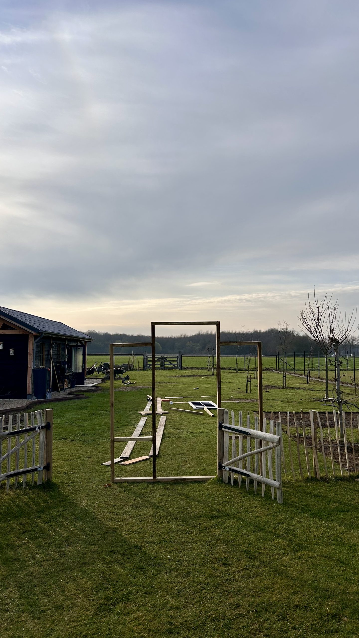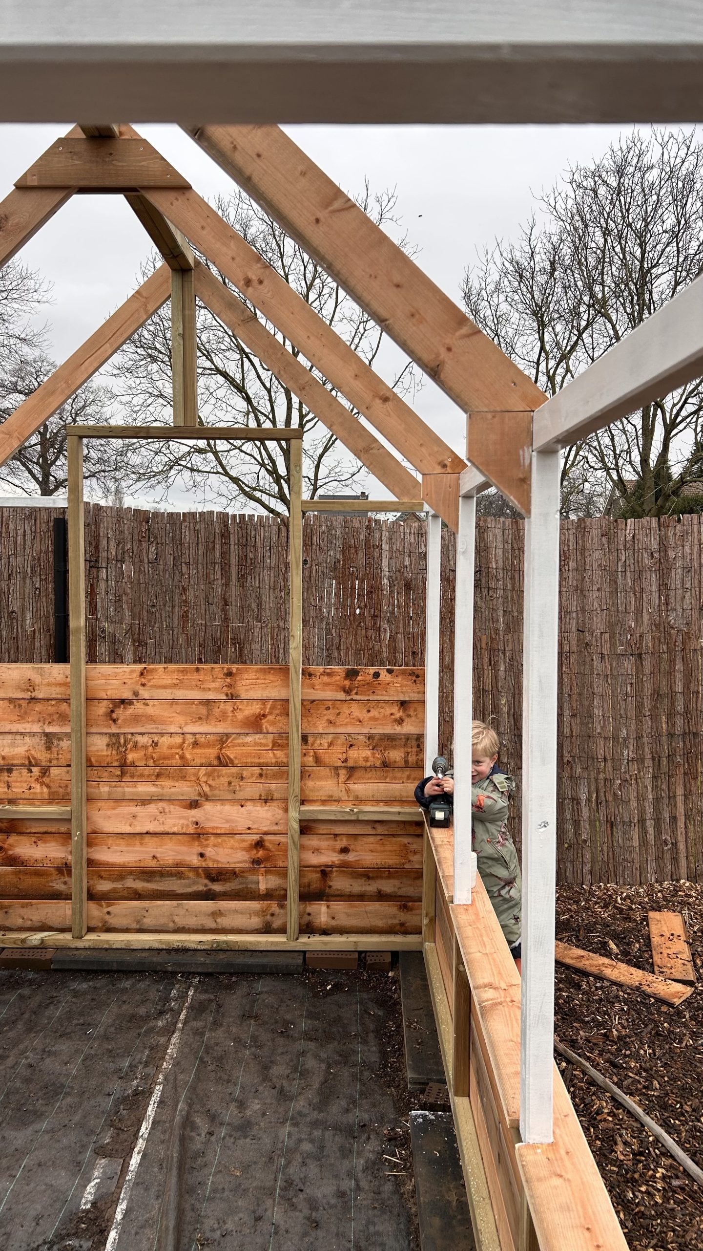 Onze tuin is een verhaal apart. Toen we in 2023 een groot weiland kochten van 2500 m2 zijn al begonnen met het aanleggen van de tuin. Terwijl de bestemming van het land nog agrarisch was en er nog geen schep de grond is was gegaan van/voor ons woonhuis. Nu, in 2026, hebben we een prachtig stuk grond. We hebben al een lange tijd een grote moestuin en willen graag een tuinkas hebben. Om tomaten, komkommers, sla, meloenen en pepers te kweken. Lea kijkt al tijden rond en online komen we steen dezelfde modellen tegen: aluminium frames met of glazen dak en ramen of van polycarbonaat. Maar als je een ‘goede’ afmeting kas wil hebben waar je ook in kan staan zonder je hoofd te stoten, komt je al gauw uit op 3000 euro. Dus beslissen we om er zelf eentje te maken. Een houten frame, want van hout kan ik ver maken, en eentje met een model dat we leuk vinden. In dit blog neem ik je hierin mee.