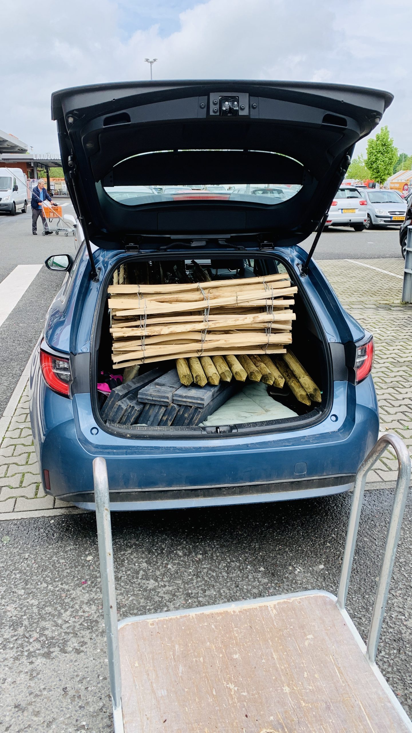 En voor ik het vergeet. Onze woonkamer is ook al goed gevuld. De nieuwe bank staat er in en in ons oude huis zitten we inmiddels op de tuinbank. Want de oude bank (die nog best nieuw was met 2 jaar op de teller) is ook al verkocht: aan een stel Belgische dierenartsen. Het haardje staat erin, de mooie designlamp hangt boven de eetkamertafel en de nieuwe Scandinavische stoelen staan er aan. En de koraalkleurige keuken staat inmiddels ook op z’n plek. Die is half juli geplaatst. De eiken overkapping gebruiken we ook al elke dag. We hebben een tijd terug zelf een buitentafel in elkaar geklust. Hup – naar de houthandel waar we vier douglas planken laten zagen van drie meter lang.