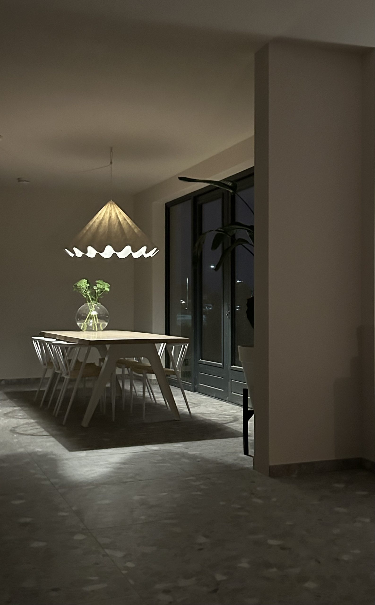 In week vijf van 2024 komen de breedplaatvloeren van de zolder erop en iets verderop in de week wordt het beton gestort. Cool. De eerste week van februari is vooral een metselweek. De voorgevel wordt opgetrokken en ook de andere muren van het huis. Er is wat puzzelwerk nodig omdat de architect niet goed genoeg rekening heeft gehouden met de maten van de pannen en de dakkapellen die we krijgen. Er zijn wat opties en Lea beslist daarover als ik op kantoor ben. Prima. Op vrijdag trakteren we de metselaars op een lekker frietje! Er blijkt toch een frituur open te zijn om 12 uur ‘s middags dus die krijgt de verdiensten. Vastelaoveszaterdag rijden we met een ietwat zieke Jolijn naar Giessenburg. Hier ligt de zogenaamde ‘graanschuur’: een brocante winkel met van allerhande lampen. We tikken een geweldige lamp op de kop die boven onze voordeur komt te hangen. Van Aldo Bernardi, een Italiaanse ontwerper.